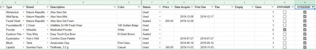 This might look excessive and laborious but the design of the database aims to reflect the following: 1) length of time it takes to pan/consume a product 2) frequency of use 3) product value. All three will help me or any consumer make better judgment in purchasing apart from the packaging or price or a favorite Youtuber’s recommendation.