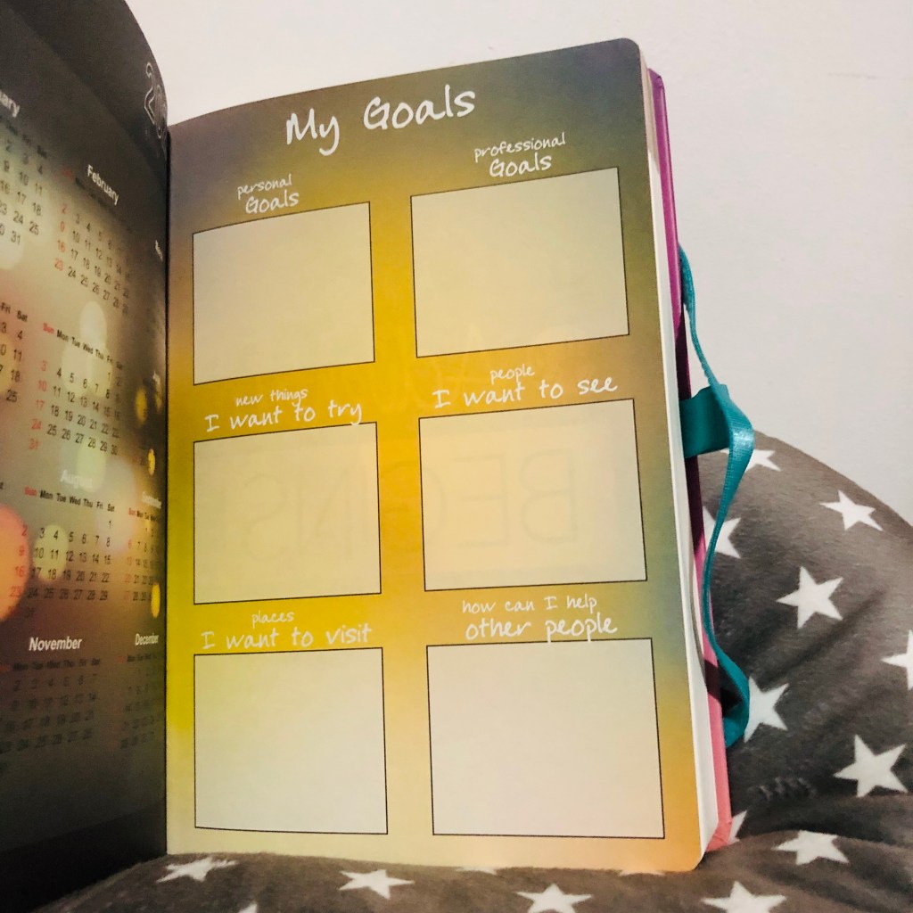 This part allows me to write my goals (personal or professional) for the entire year or for the next five years if I want to, really. I just have to think about what to write in the last box because that is highly subjective.
